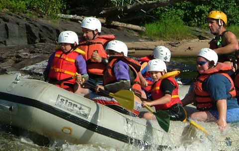 Rafting "Découverte" on the Matawin River (lenght: 4h-6h). Daily departure at 9am. The price includes lunch, equipment (helmet,floatation jacket, paddle), isothermal suit when the water temperature is under 15ºC, guide services and access to facilities. The price does not include tips for guide and isothermal suit when the water temperature is above 15ºC .